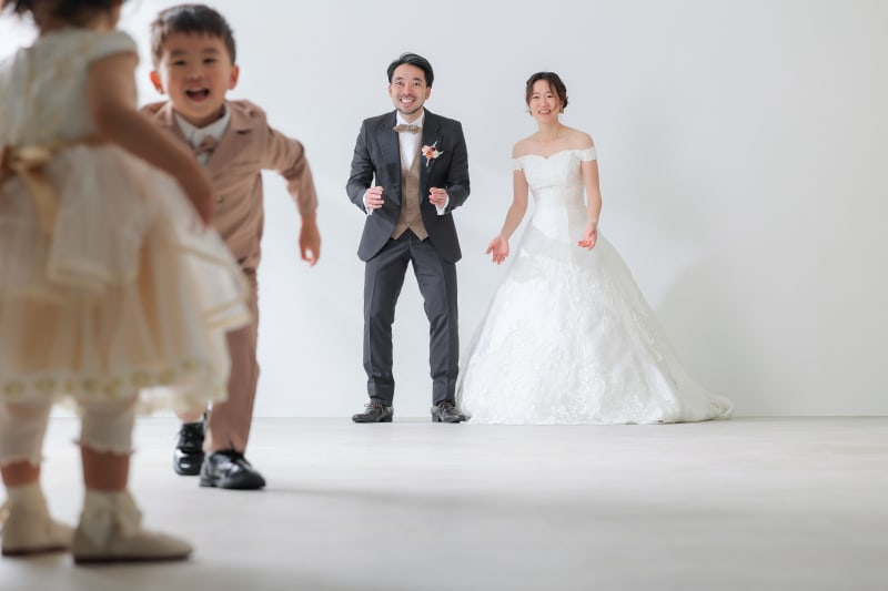 お二人から怪獣と呼ばれる子供たちが洋装撮影から合流!!さっそくカメラにポーズを決めてくれました!笑