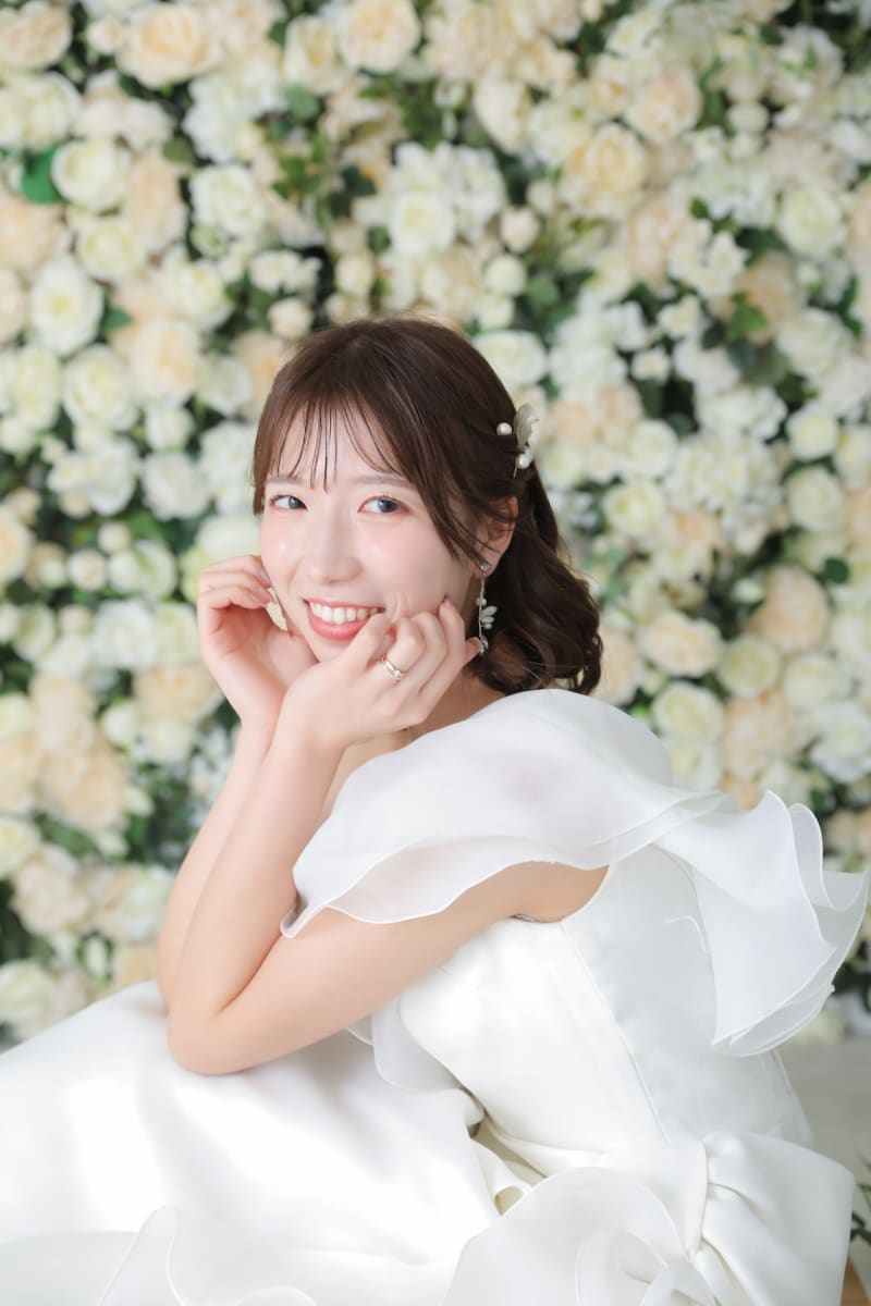 新婦様のソロカットは背景バラで可愛く!! ふんわりのライトで!