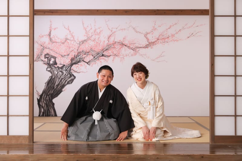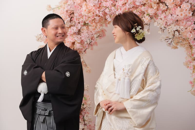 桜のアーチを使うことによって肩を寄せ合うお二人を華やかに引き立てる事ができます!
