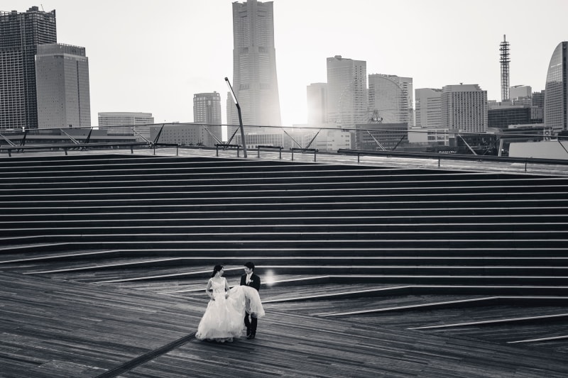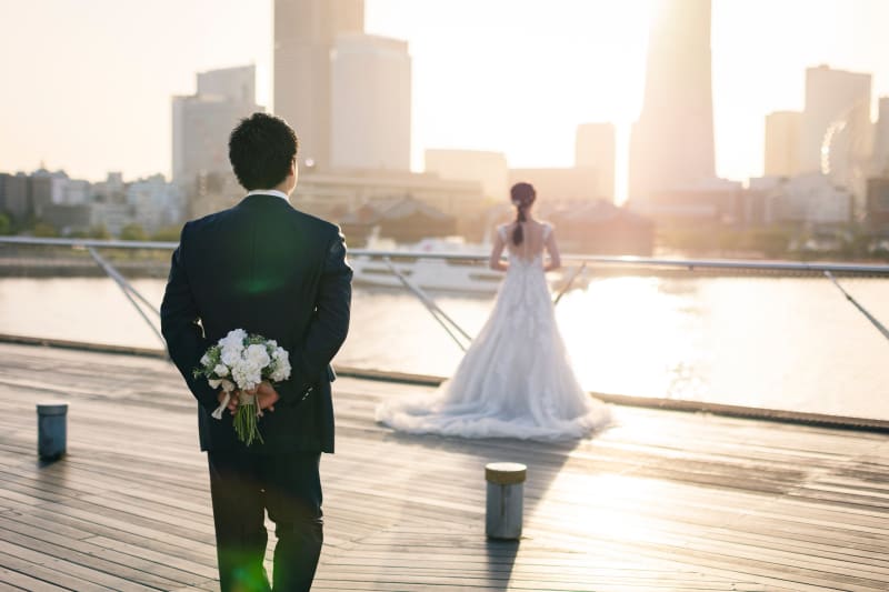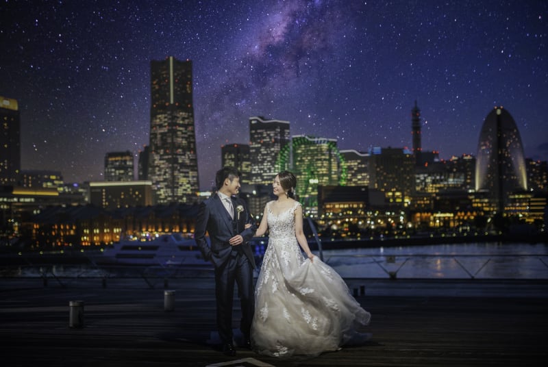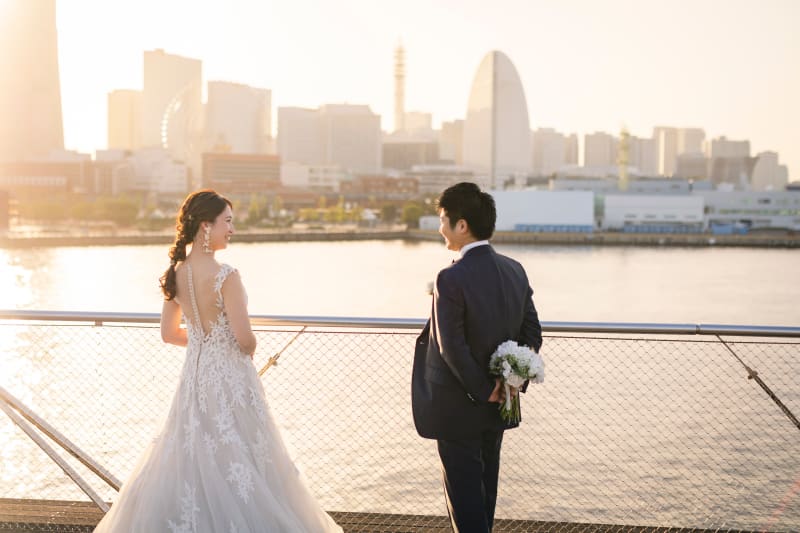 光輝くみなとみらいはお二人を祝福してくれているような気がします!とてもほっこりする写真ですね。