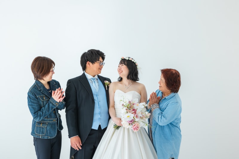 当日はお母様達にきていただいていたので、一緒に撮影! 2人を一緒にお祝いしていただきました。
