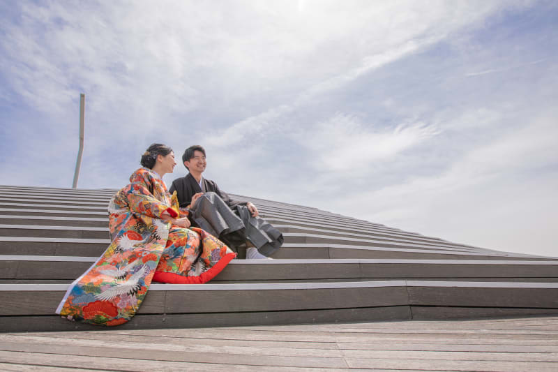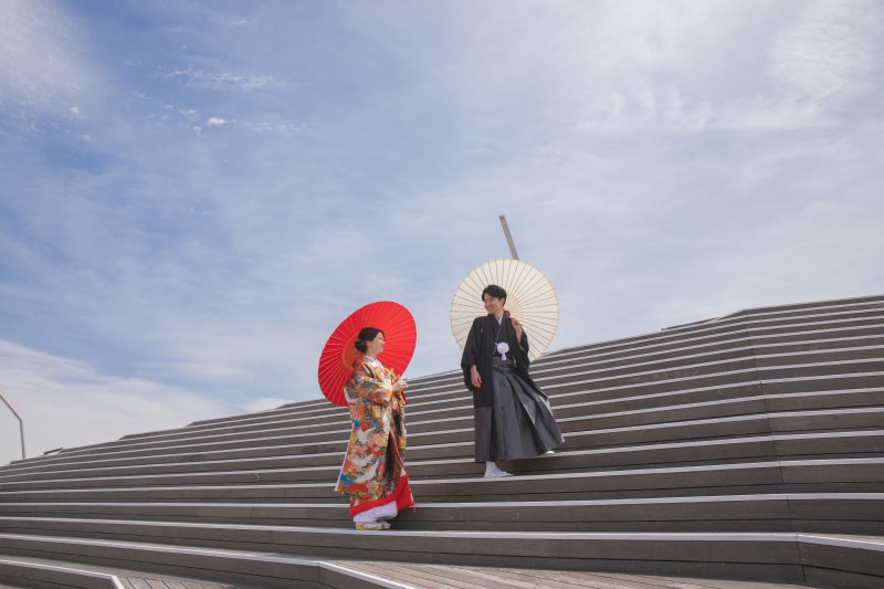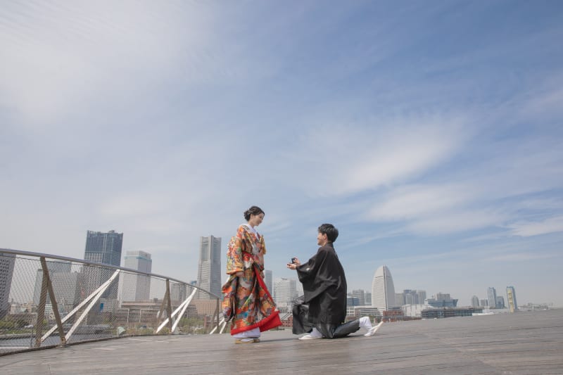 大さん橋でプロポーズ!お着物とロケーションとのマッチが素敵ですね!