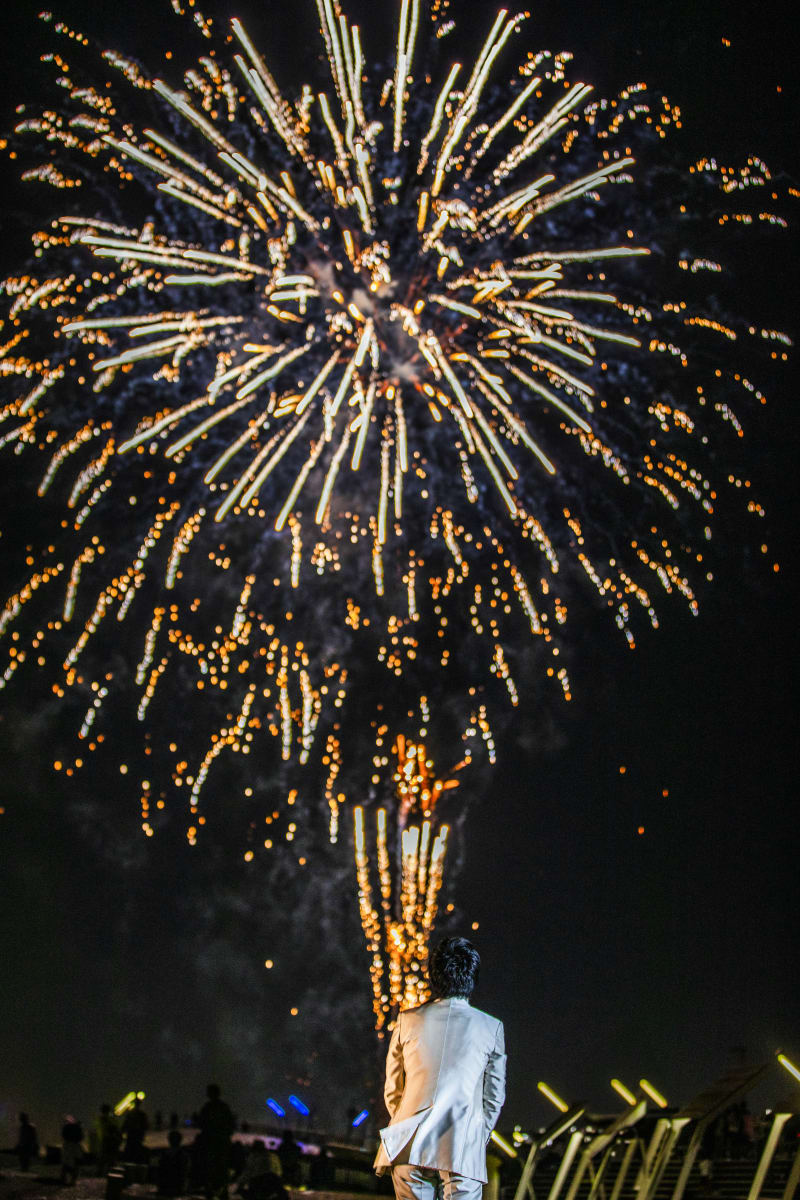 大さん橋では不定期に花火が上がるので、花火バックに撮れたらラッキー^^