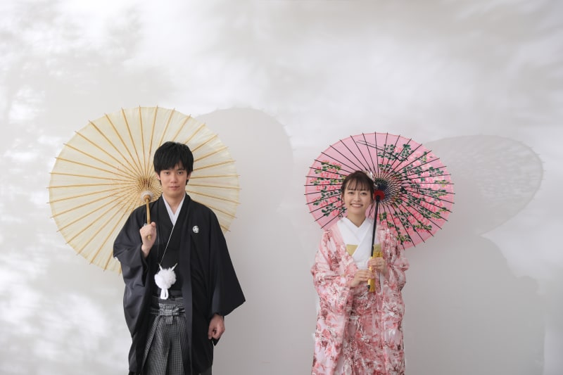 シンプルな背景ではお衣装がとても華やかに映ります^^ 可愛い和傘を持ってもおしゃれですね!!
