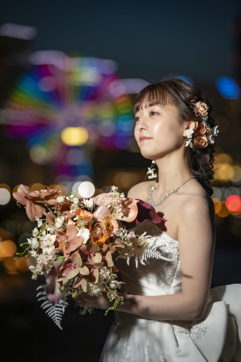 お二人の撮影もいいけど、ソロの写真もバストアップと残しておくといいですね! 背景の玉ボケも可愛い^^