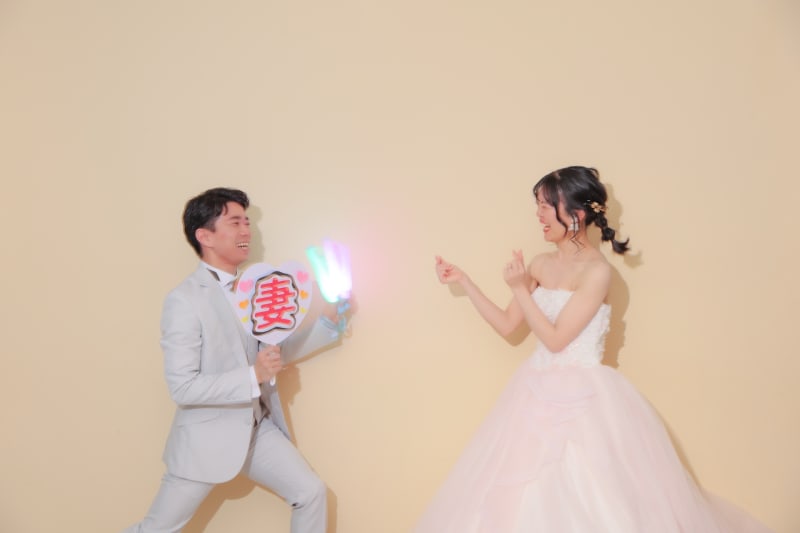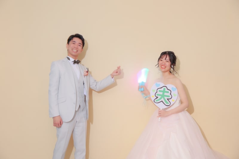 小物で持ってきていただいていた「妻」「夫」のうちわがとっても可愛かったので、