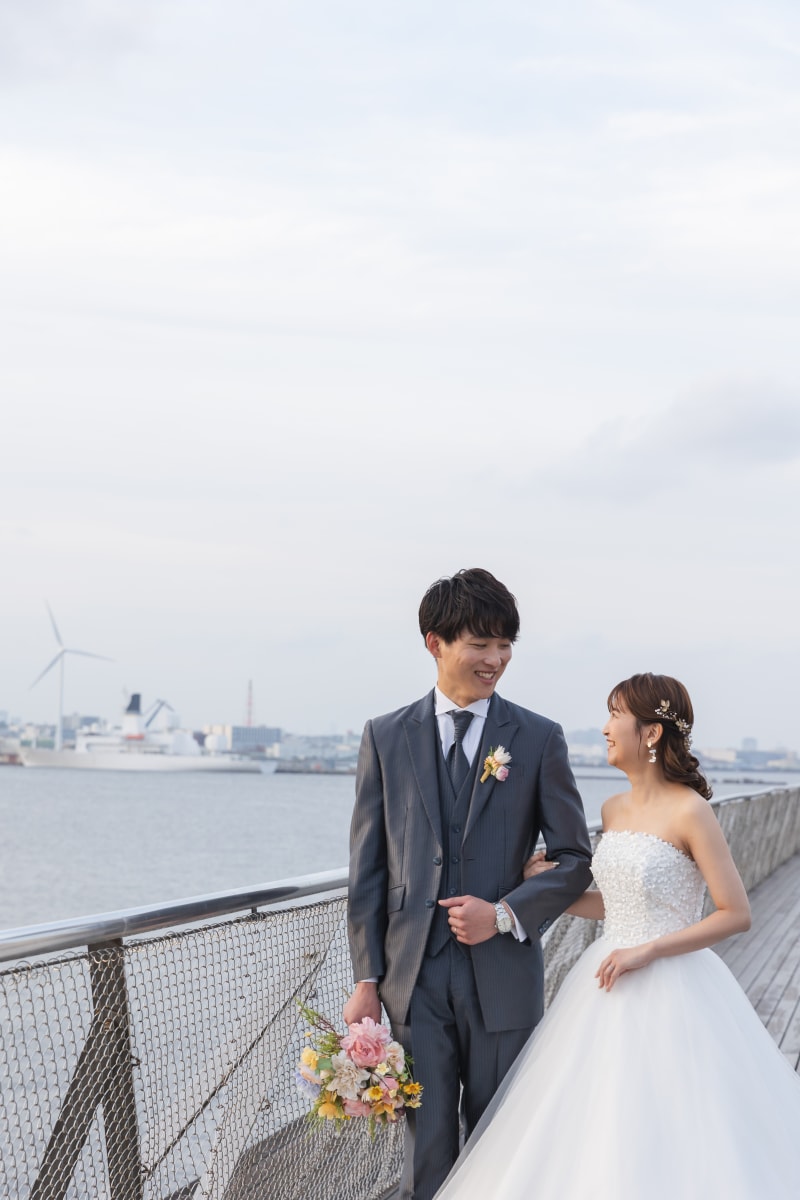 こんにちは!スタジオアクア横浜みなとみらい店の渋川です!今回は洋装の大桟橋ロケーションのお写真を紹介したいと思います!