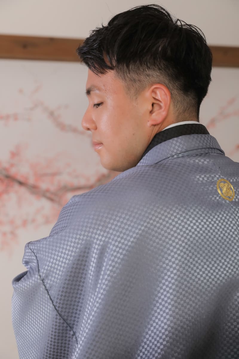 新郎様の逞しい背中と顔立ちがかっこよさを増しています!和装がとてもお似合いですね!