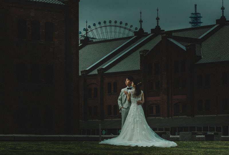 最後は赤レンガをバックにカッコよく撮影させていただきました! 終始とても笑顔が素敵なお二人でした!!