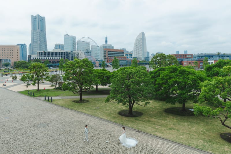 少し遠くから撮らせていただき、みなとみらいらしい背景と一緒に撮影させていただきました!