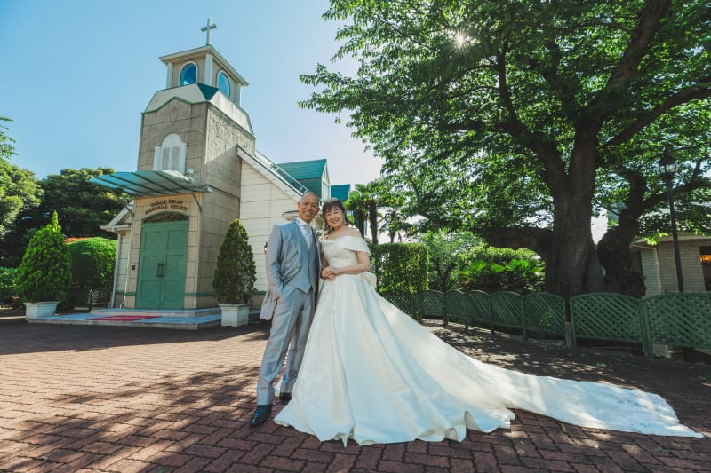 バージンロードに立っていただきかっちりとした印象の写真に。