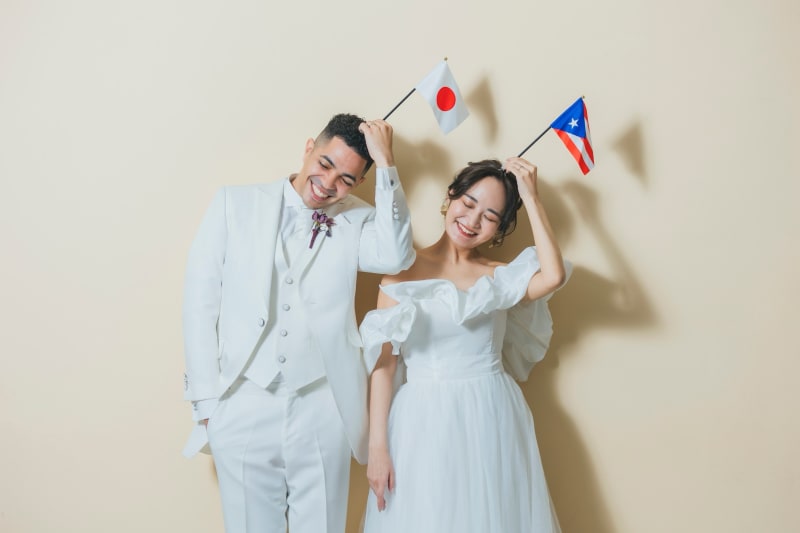 次は先ほどの上品なイメージとは変わって、可愛く明るく撮りました!お互いの国旗を頭に乗せて仲良く笑顔で!!