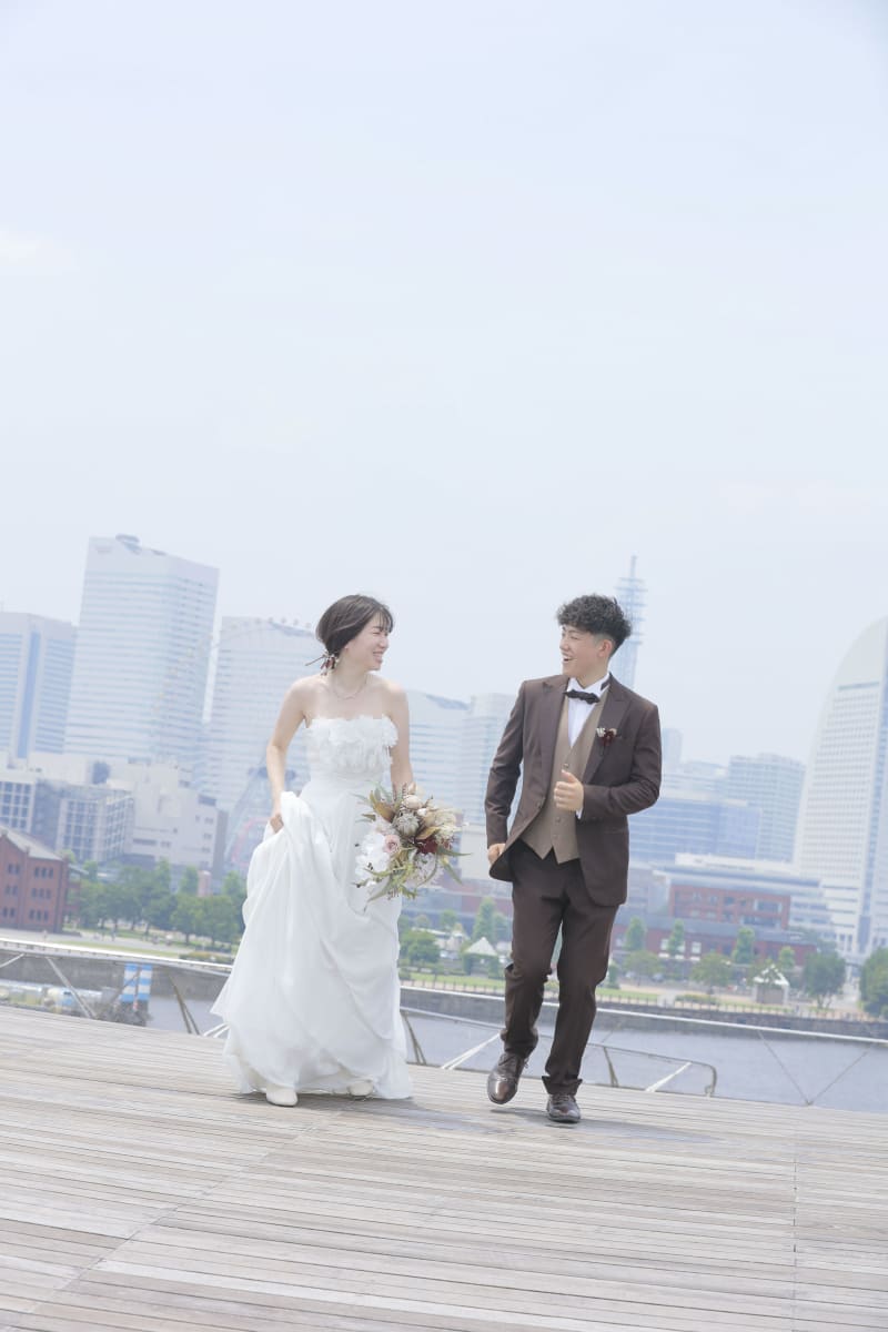 大桟橋を走っているショットが撮りたいとご希望いただきました! ということで、その場で全力足踏み! 思わず大笑いのお二人でした