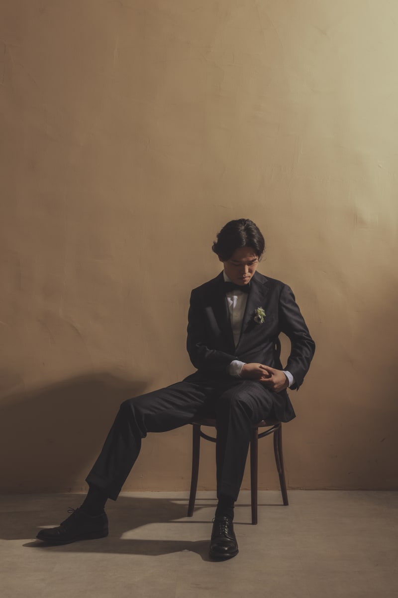 先程の明るい写真とは違ってクールでかっこいい新郎様。シンプルな背景でも映えますね!