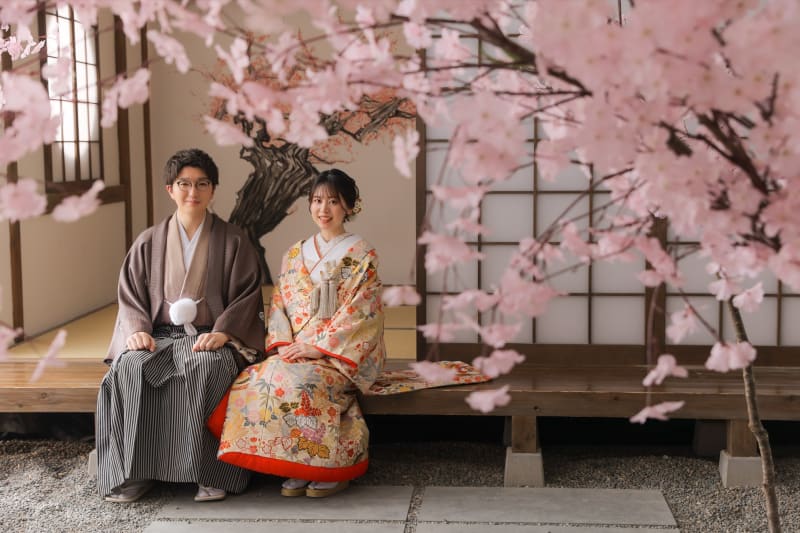 このスタジオはしっかりした庭園背景だけでなく、色んな背景で撮影ができるのが嬉しいポイント!