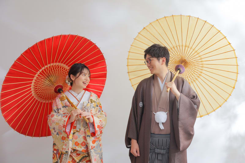 まずは白背景からご紹介!ふたりの素敵な笑顔がばっちり映えますね。