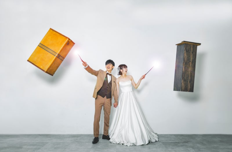 線をまたぐと二人は魔法使いに変身しました^^ アイデア次第で、見たことのないような写真に仕上がります! ぜひカメラマンの指名もご検討くださいね^^