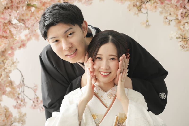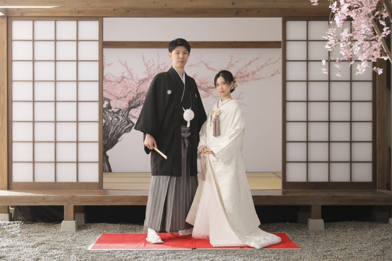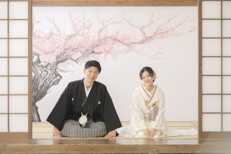 和装といえばこの一枚。和室、縁側、砂利全てがお二人を引き立てます。