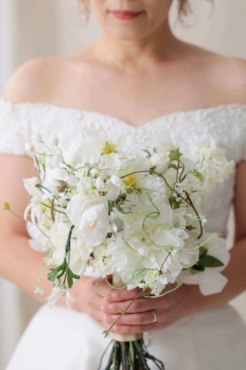 新婦様のドレス姿とても美しいですね! ブーケも白で統一されていてすてき!