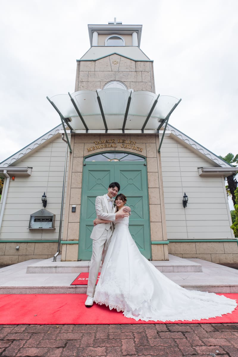 ヘレン教会にきました! お二人とも白の衣装が素敵ですね
