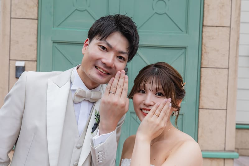 指輪を見せて結婚しました!のお写真です! とても可愛いお二人でした!