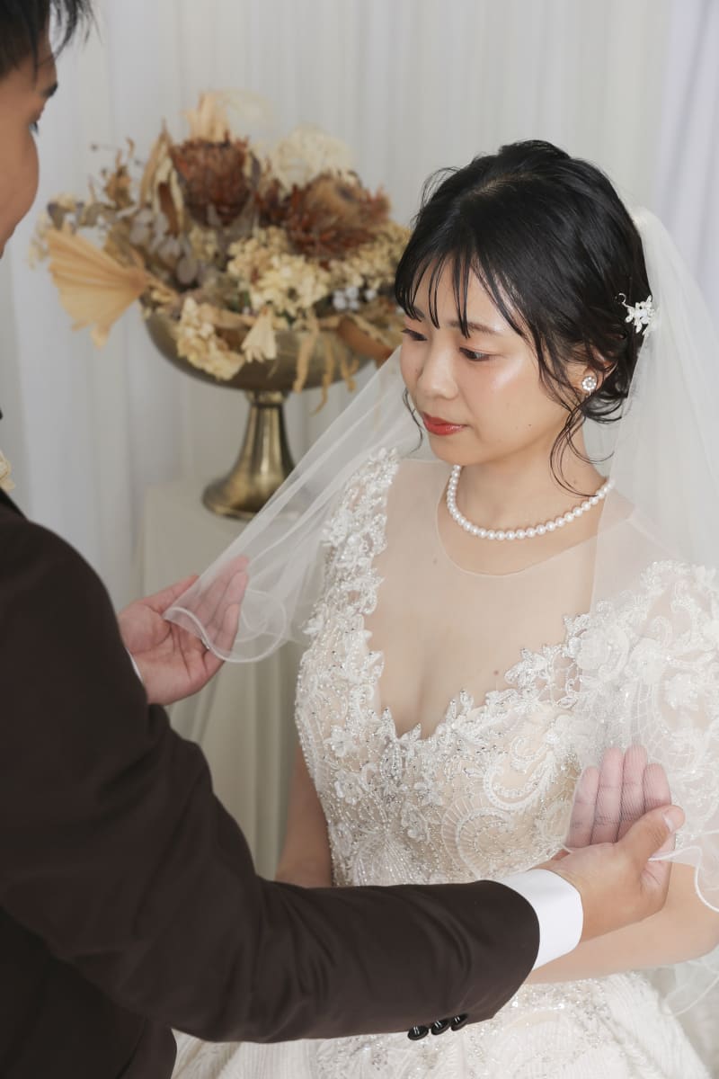 洋装では実際に結婚式でやるようなベールアップのシーンをやります!!