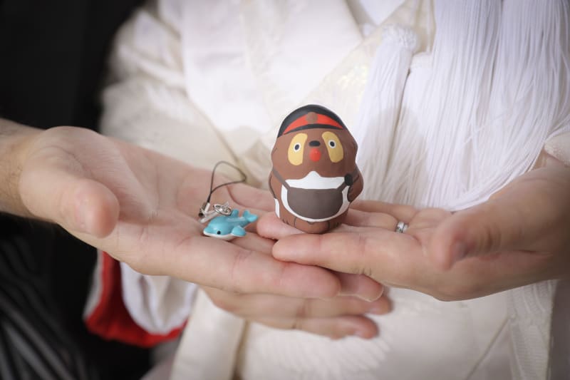 たぬきの置き物は、「新郎様そっくり!」とご新婦様のお気に入り