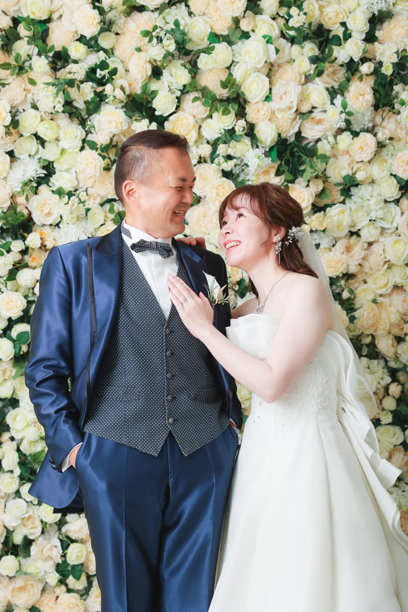 バラの背景でも楽しそうな雰囲気満天のお二人! 笑顔が素敵ですね