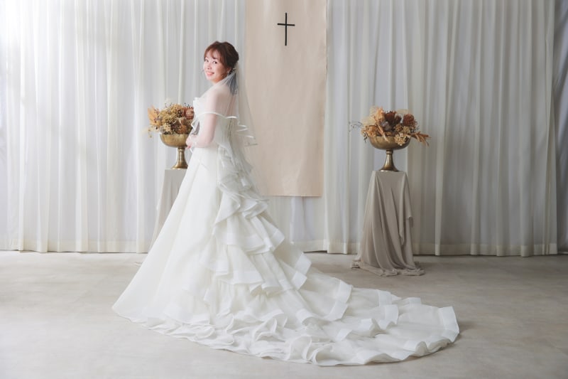 新婦様のソロショットです! 特徴的なドレスで素敵ですね!