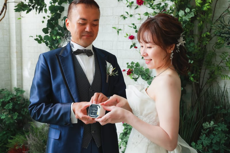 指輪を持ってお二人で指輪を見つめているお写真です!
