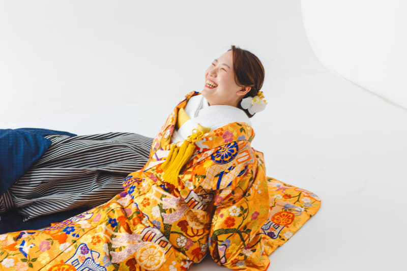 カラフルな和装のお衣装が白背景に映えてます!