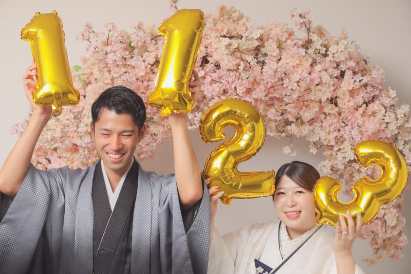 数字のバルーンと一緒に撮影!可愛くなるように頭のところで掲げていただきました^^