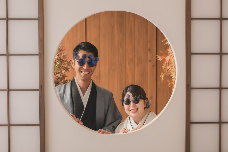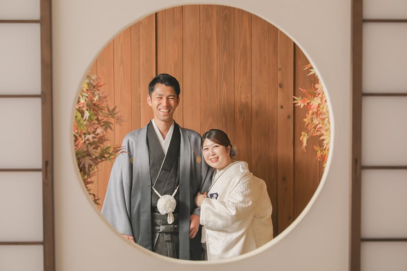 お二人ともニコニコのとっても素敵な笑顔です!丸窓から撮ると可愛らしくなります!