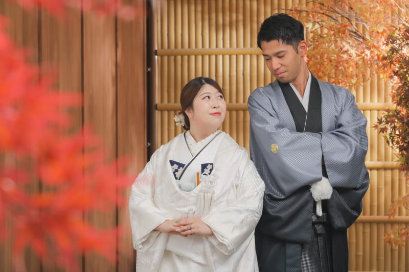 お二人とも振り返って見つめていただきました!落ち着いた印象のお写真になりました!