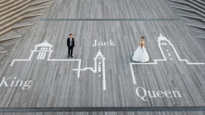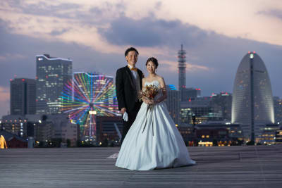 和装は屋内庭園スタジオ、洋装は大桟橋の夜景です。