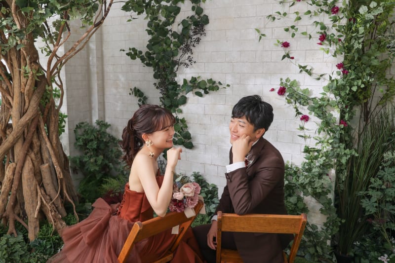 スタジオ内にはガーデン風の背景もあり、雨の日でも安心して屋外のような雰囲気で撮影が可能です。