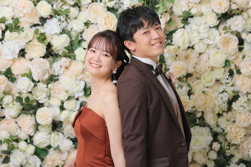 お二人の自然な笑顔と華やかなフラワーウォールの組み合わせが本当に素敵でした!