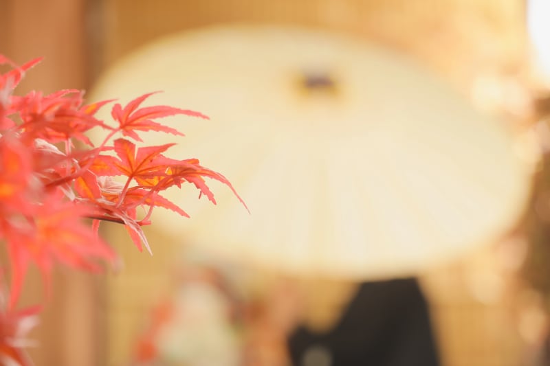 和傘を使った撮影も行い、紅葉と和傘が生み出す渋い雰囲気は、まさに和の美しさです。
