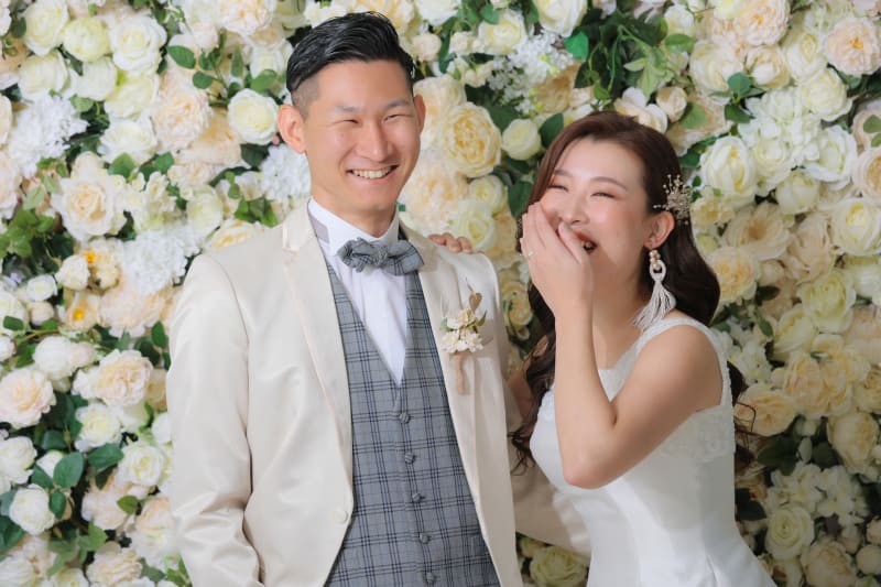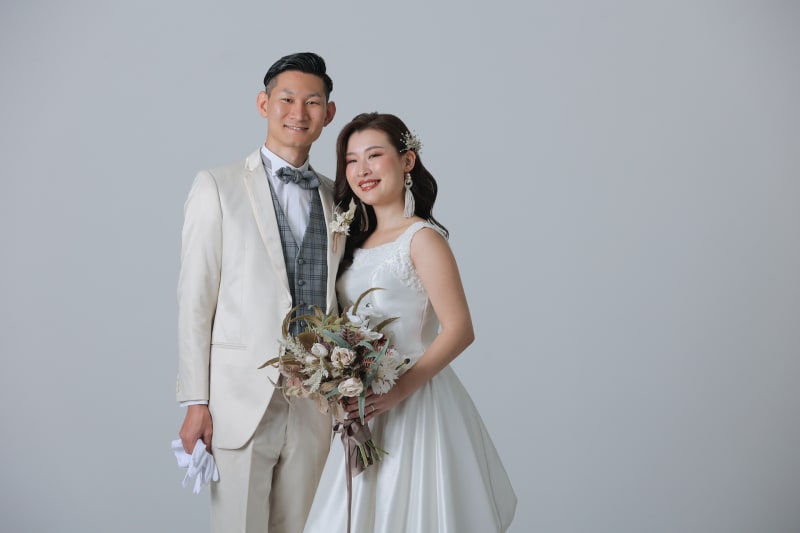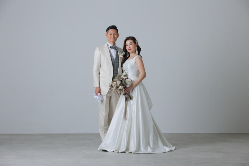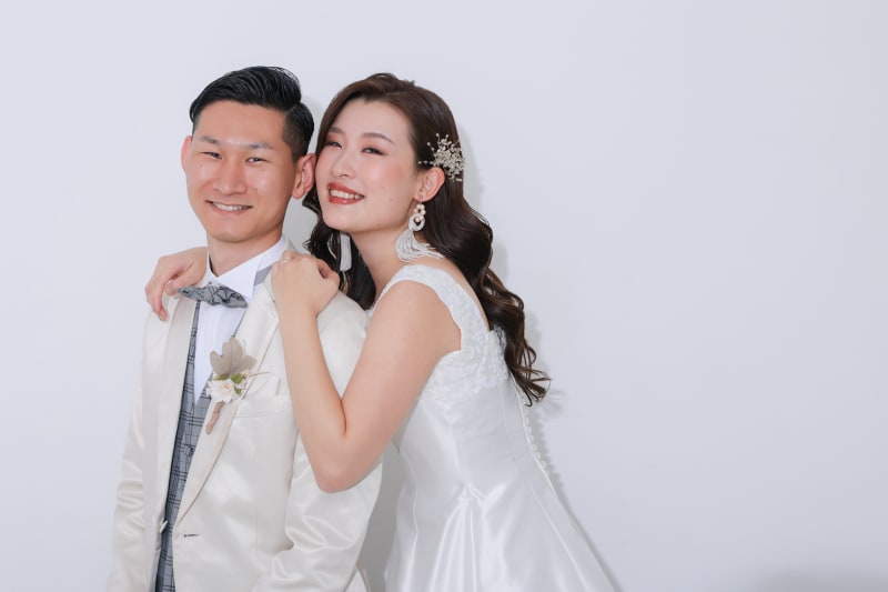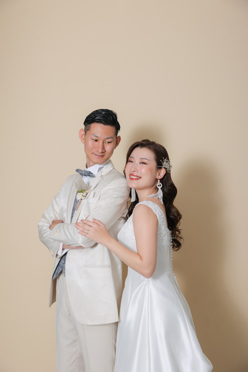 白背景で昔ながらの婚礼写真をお二人の表情もお衣装も綺麗に残せるマストカットです。