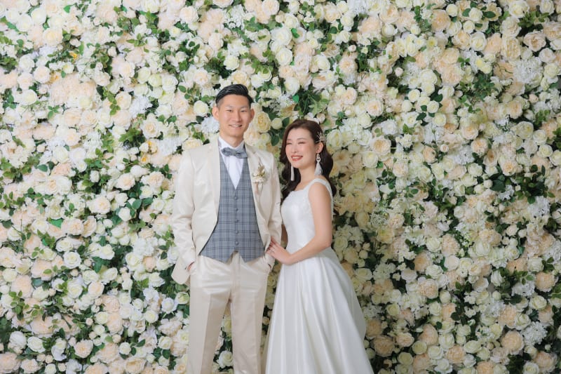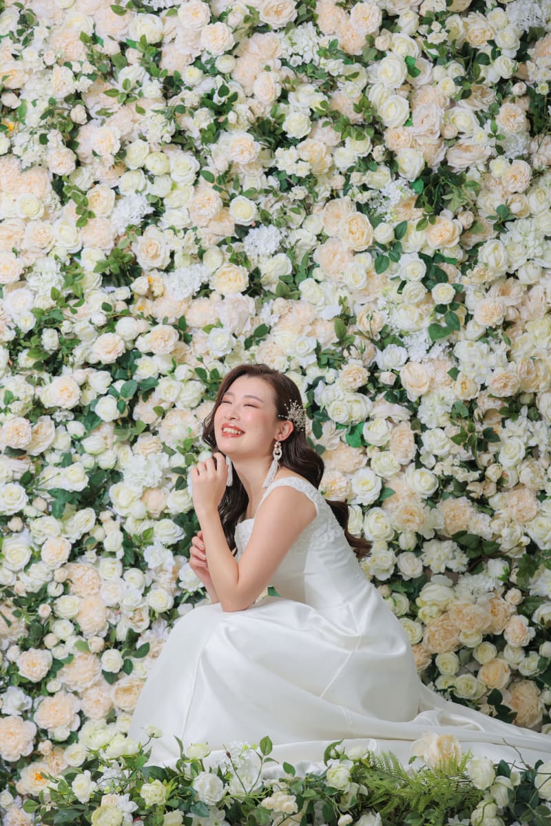 白を基調とした満天のお花に囲まれて撮影ができます♡