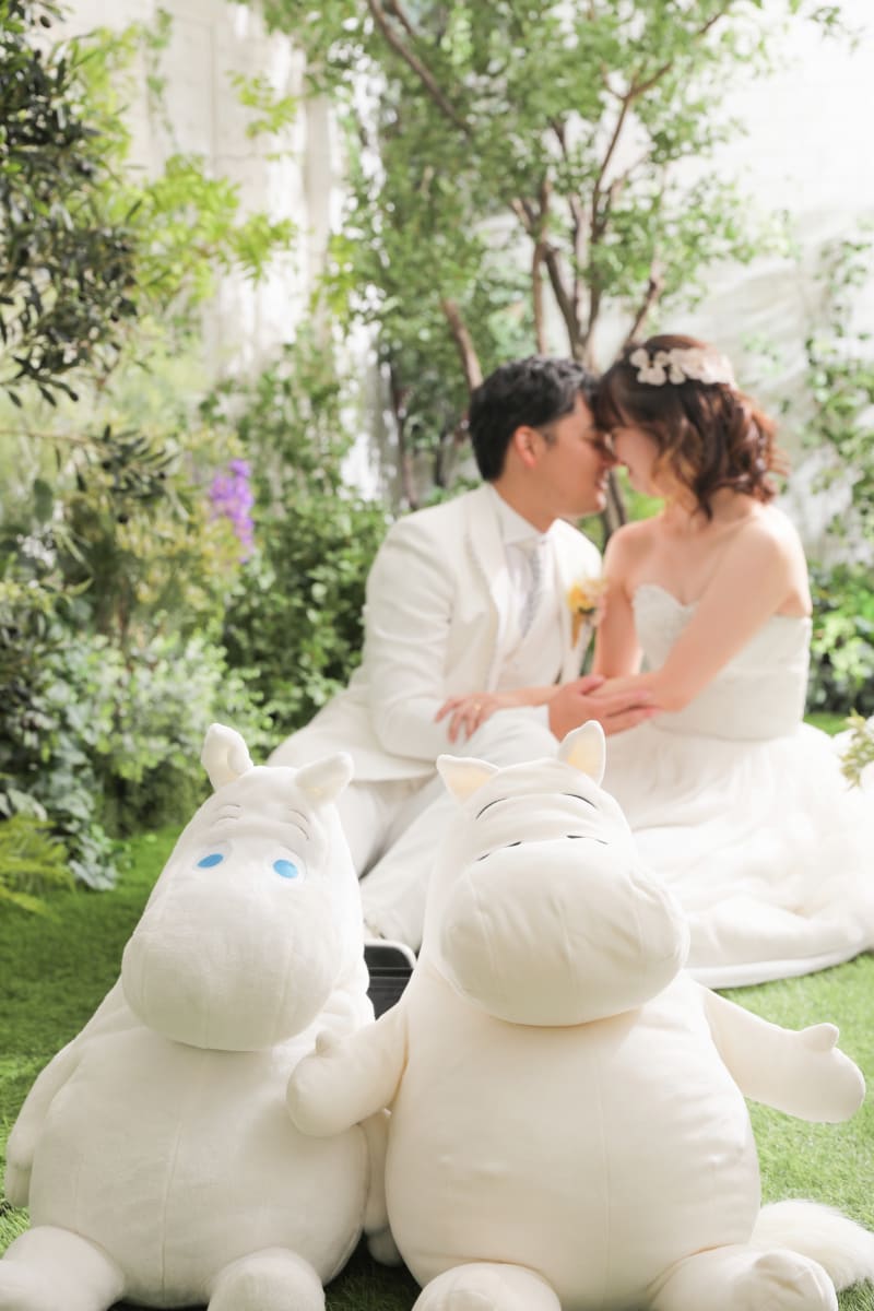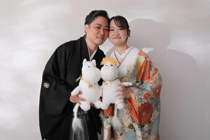 お二人がムーミンのぬいぐるみをもってきてくださいました! ムーミンもおふたりもピッタリくっついていて可愛いですね