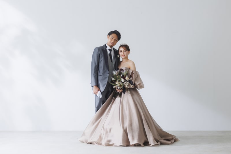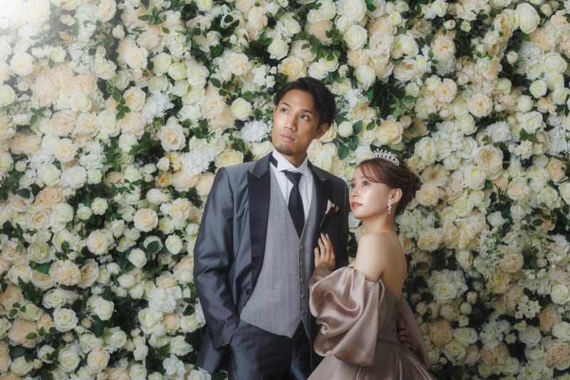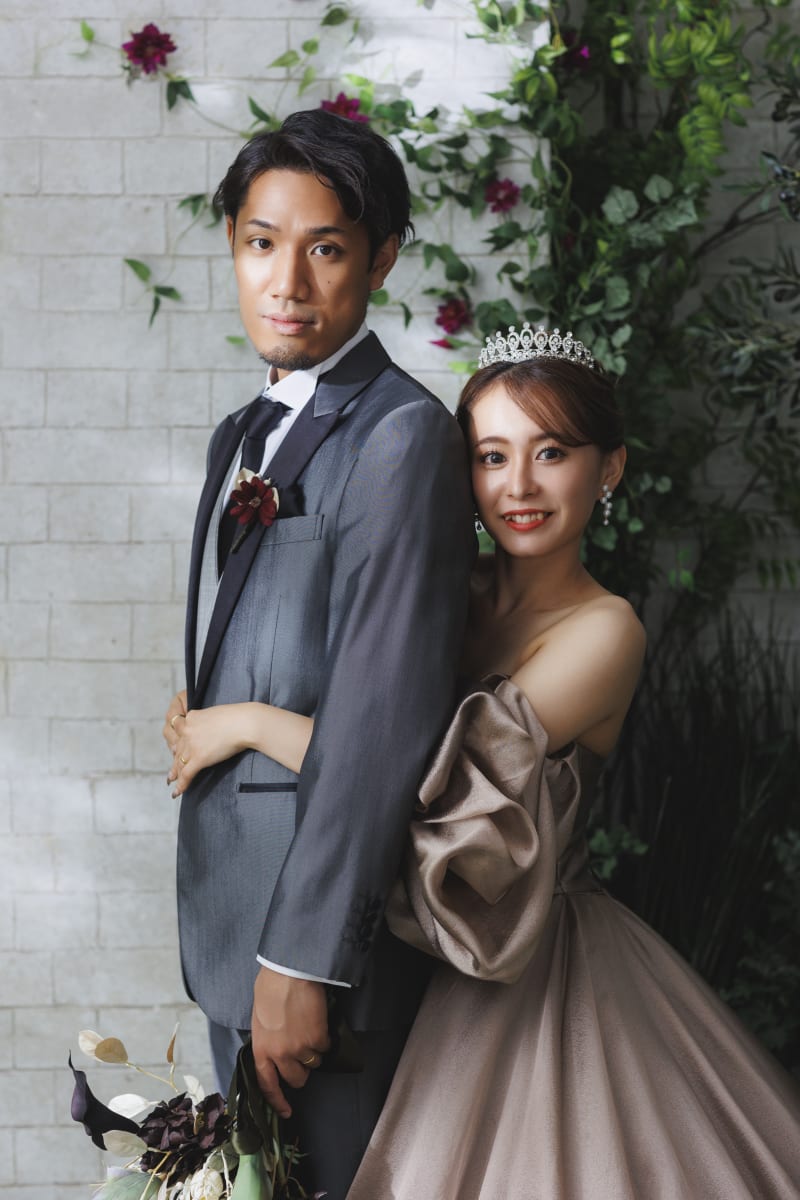 年賀状にも使えるフォーマルポーズで!! 白壁で撮るからこそお二人の表情、ドレスにフォーカスされます^^