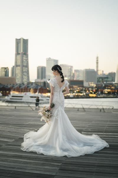 新郎新婦様の魅力がギュッと詰まった、大桟橋でのウェディングフォト。この素敵な写真が、二人の幸せな瞬間を永遠に記憶に残るものであることを願っています。お二人の未来に、たくさんの笑顔と幸せがありますように。ありがとうございました!