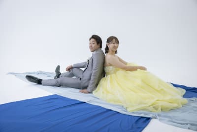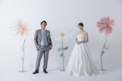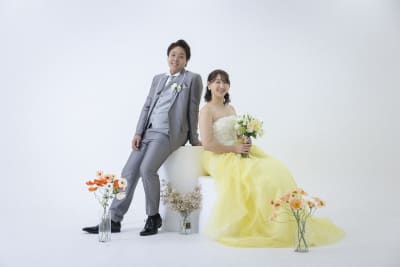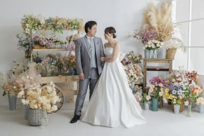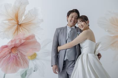 シンプルなスタジオをお二人の好きな色や好きなものでアレンジしながら撮影できるので、