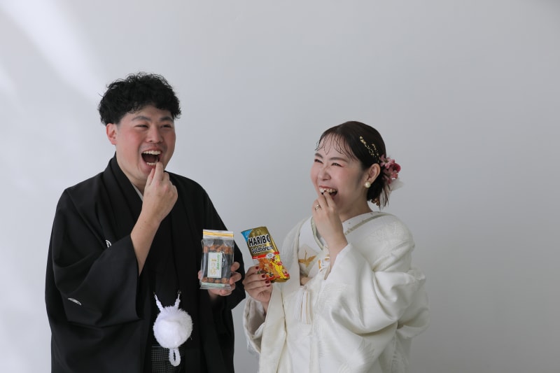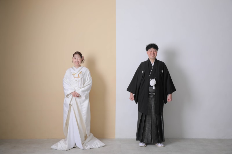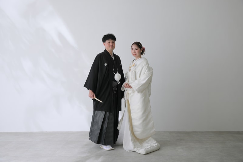 和装もカジュアルにハウススタジオで撮影! 白無垢と黒紋服で素敵です!