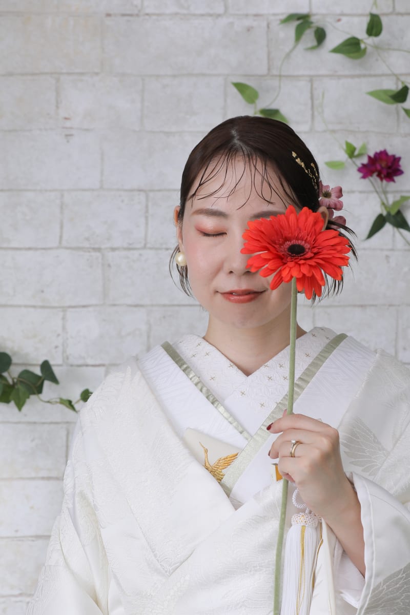 大きい1輪のお花で撮影! 赤のお花が似合いますね!!