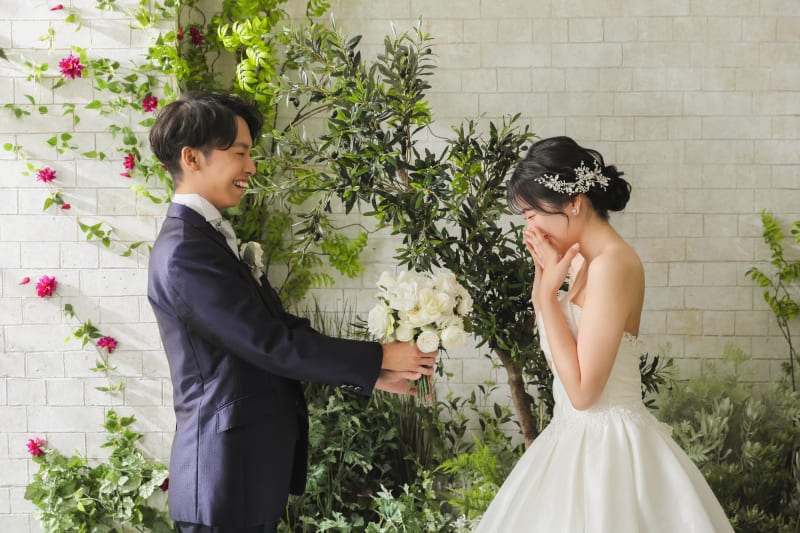 新郎様がブーケをプレゼント!嬉しそうなお二人の表情を撮影できました!