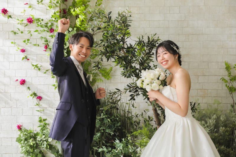 ブーケを受け取ってもらってガッツポーズ!お二人とも楽しそうにやってくださいました!