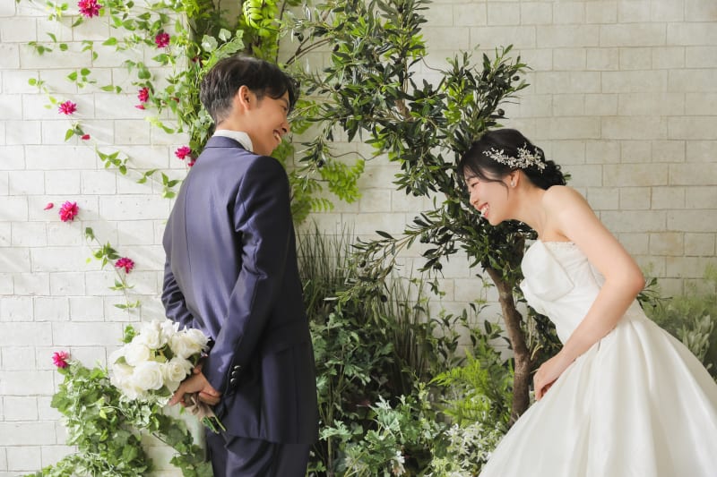 新郎様が後ろでブーケを隠していて新婦様が探すところを撮影しました!