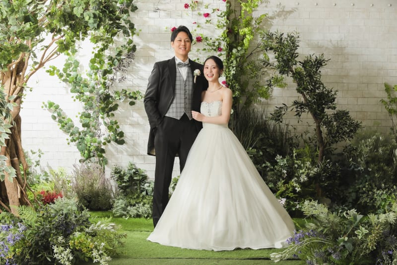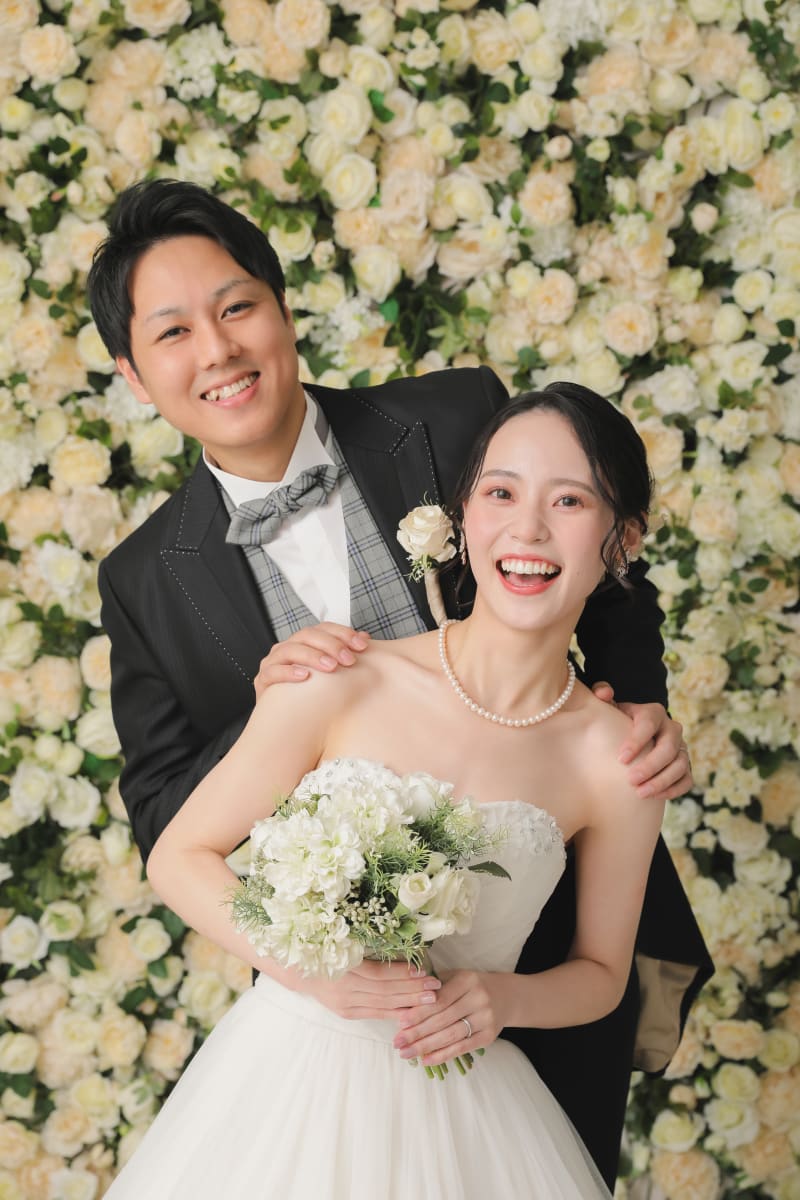 お二人の身長差がいい感じだったので左右にひょこっとしていただきました!笑顔から楽しいのが伝わりますね!